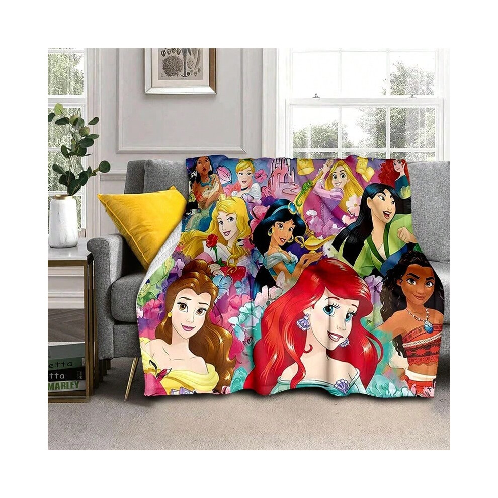 (24, 100x150cm) 2025 New Cartoon Disney Princess Ariel Elsa Girl Gift Soft Plush Blanket,Flannel Throw Blanket for Living Room Bedroom Bed Sofa