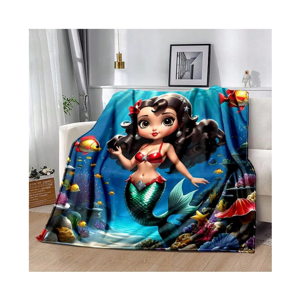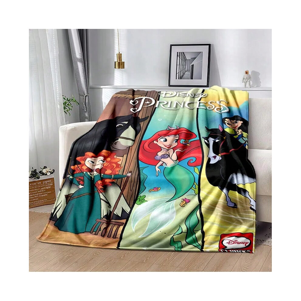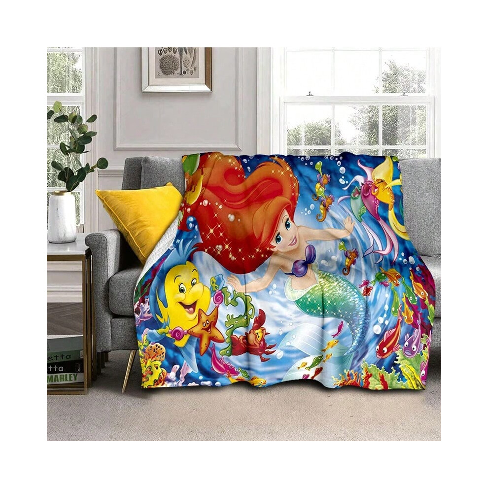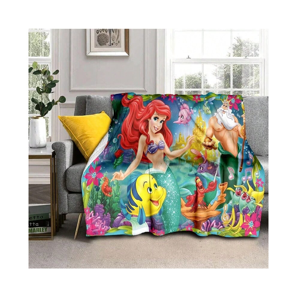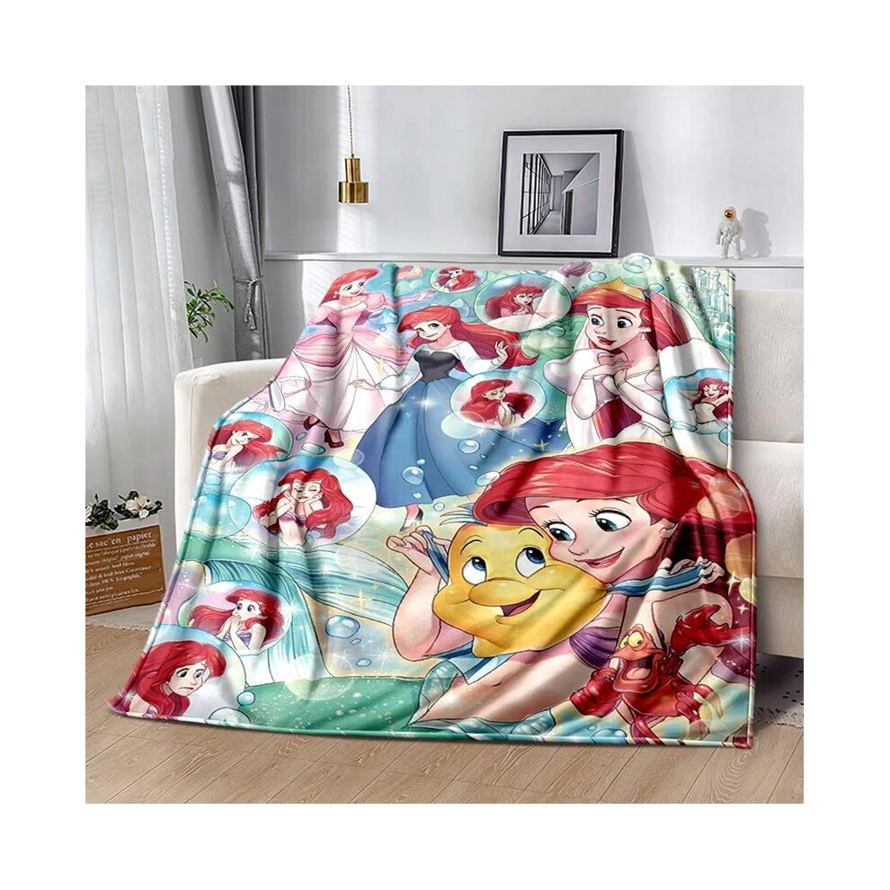 (1, 100x150cm) 2025 New Cartoon Disney Princess Ariel Elsa Girl Gift Soft Plush Blanket,Flannel Throw Blanket for Living Room Bedroom Bed Sofa