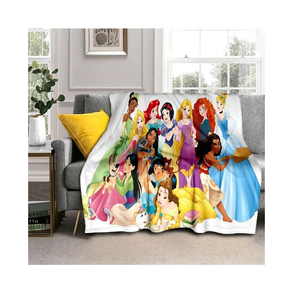 (5, 130x150cm) 2025 New Cartoon Disney Princess Ariel Elsa Girl Gift Soft Plush Blanket,Flannel Throw Blanket for Living Room Bedroom Bed Sofa