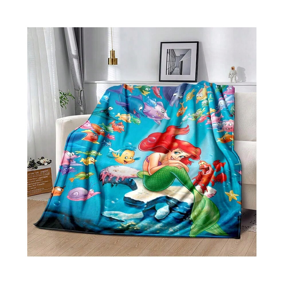 (10, 150x180cm) 2025 New Cartoon Disney Princess Ariel Elsa Girl Gift Soft Plush Blanket,Flannel Throw Blanket for Living Room Bedroom Bed Sofa