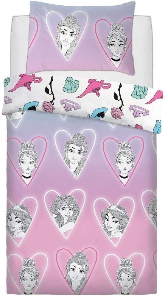 DISNEY PRINCESS SINGLE DUVET COVER SET EURO SIZE 100% COTTON GIRLS BEDDING PINK