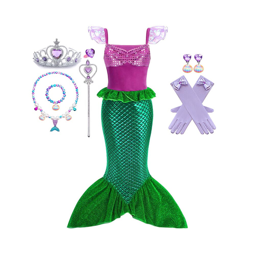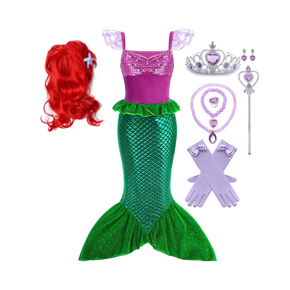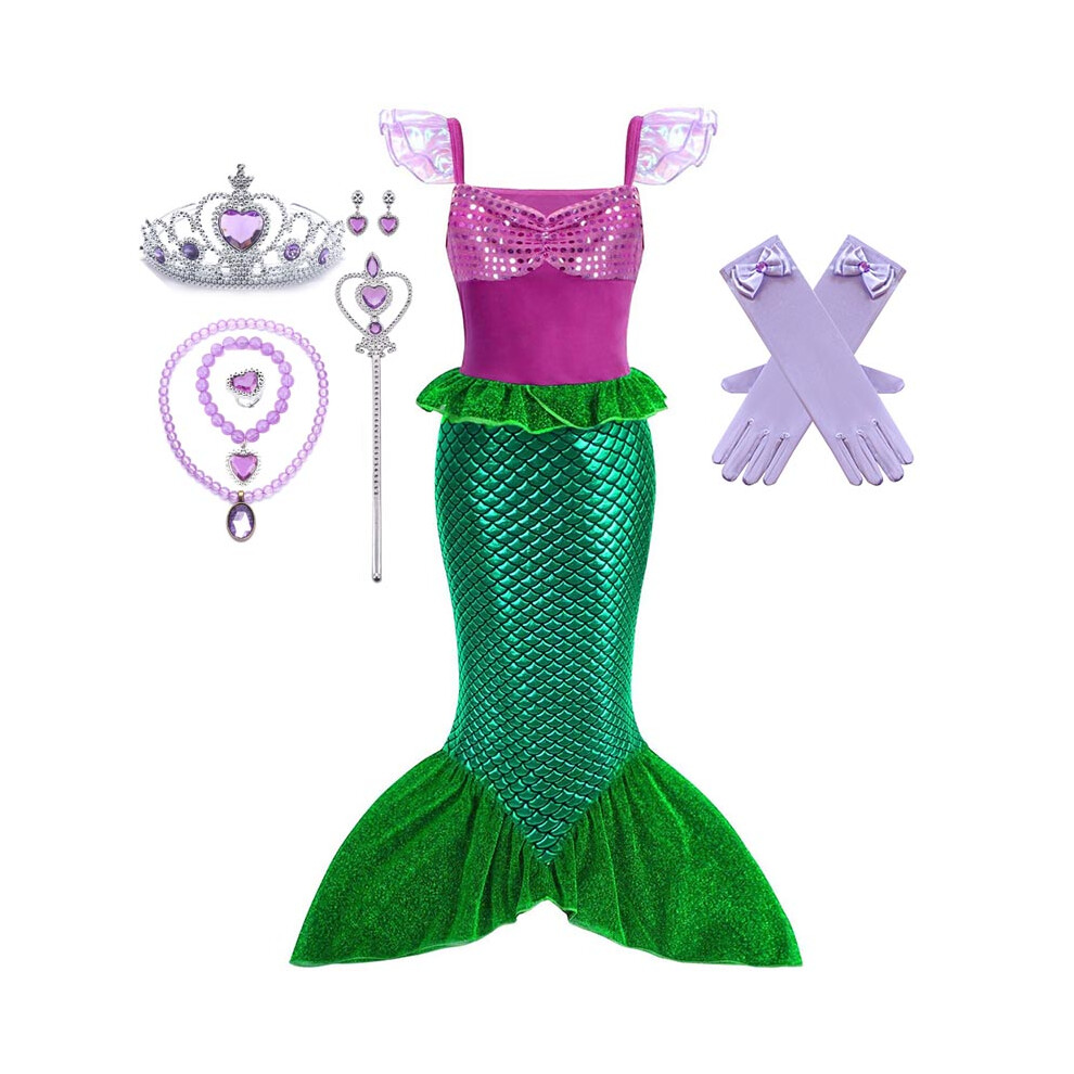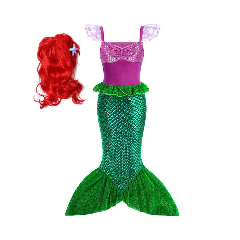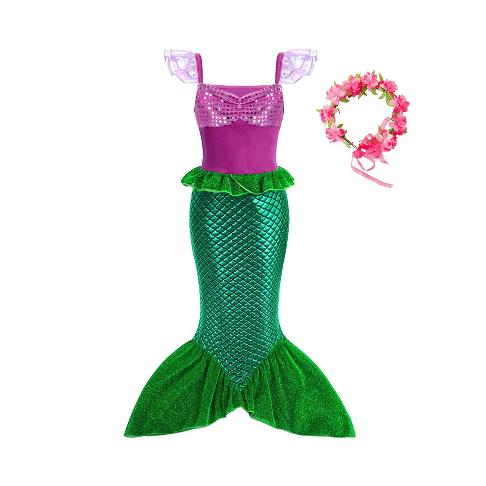(I, 110(3T)) Girls Cosplay Disney Little Mermaid Ariel Prom Princess Costumes Kids Summer Casual Dress Halloween Birthday Party Dress Up 2025