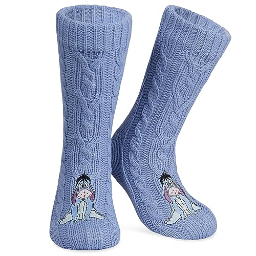 Disney Socks for Women & Teens UK Size 2.5-7.5, Non Slip Fleece Slipper Women’s Socks, Soft & Breathable, Gifts for Her (Blue Eeyore)