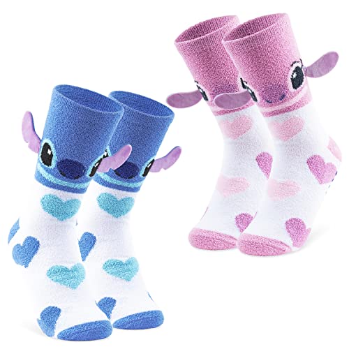 Disney Stitch Slipper Socks for Women & Teens UK Size 2.5-7.5, 3D Character Casual Socks, Soft & Breathable, Gifts for Her (Purple Angel)