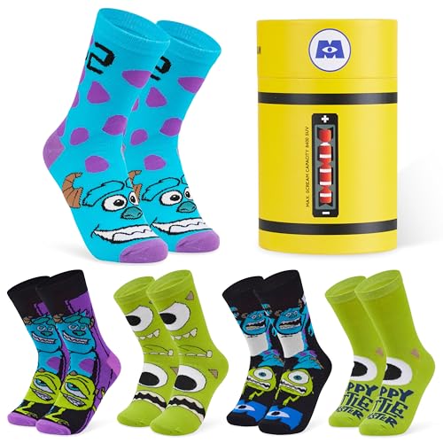 Disney Monsters Inc Socks for Boys & Teens, Pack of 5 Comfy Casual Sports Crew Socks, Soft Warm Breathable, Gifts for Boys (Multicolour, 9-14 Years)