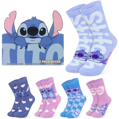 Disney Stitch Ankle Socks for Women & Teens UK Size 2.5-7.5, Pack of 5 Casual Ladies Socks, Soft & Breathable, Gifts for Her (Multi Stitch, 2.5/7.5 UK)