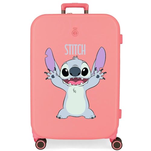 Disney Stitch Suitcase Hard Shell 66.5 x 45.5 x 25.5cm 50L Capacity 4 Wheels Handle Combination Lock Travel Essentials (Pink, M (L66.5cm x W45.5-50L)