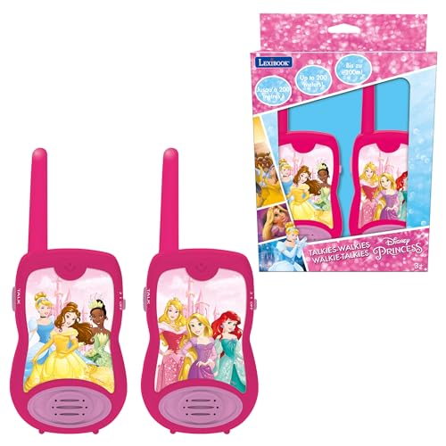 LEXIBOOK Disney Princesses Cinderella Rapunzel Walkie-talkies, communication game toy children girl, 2 channels, Belt clip, Battery, pink, TW12DPLXB