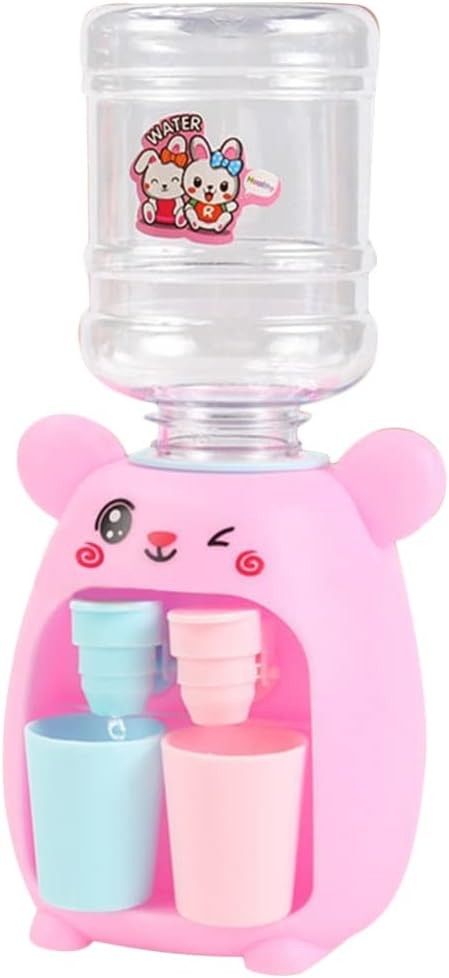 KICHOUSE Miniature Water Dispenser, Pink Desktop Simulated Drinking Fountain for, Small Plastic Water Cooler Suitable for Kitchen Play and Summer Fun