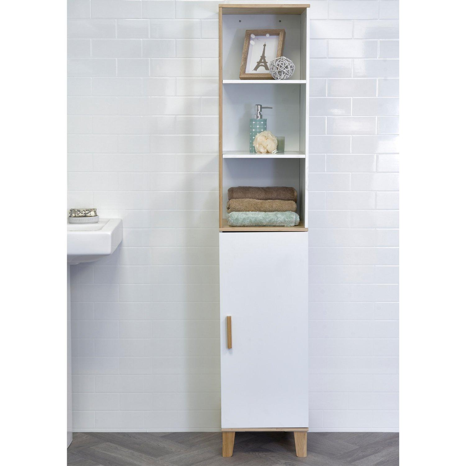 'Catania' Single Tall Floor Standing Bathroom Cabinet with Display Shelves