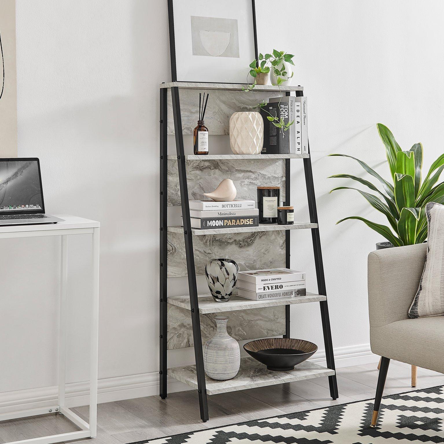 Addison Industrial Black Metal Ladder Shelf Unit With 5 Scratch Resistant Melamine Display Shelves & Max Weight of 30KG