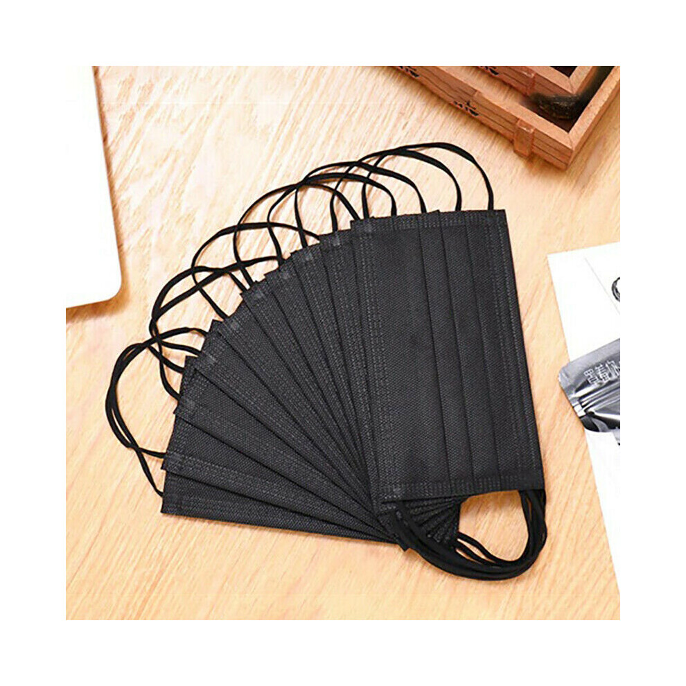 50x Black Disposable Face Mask Mouth Nose Covering 3 Ply (1x Pack of 50)