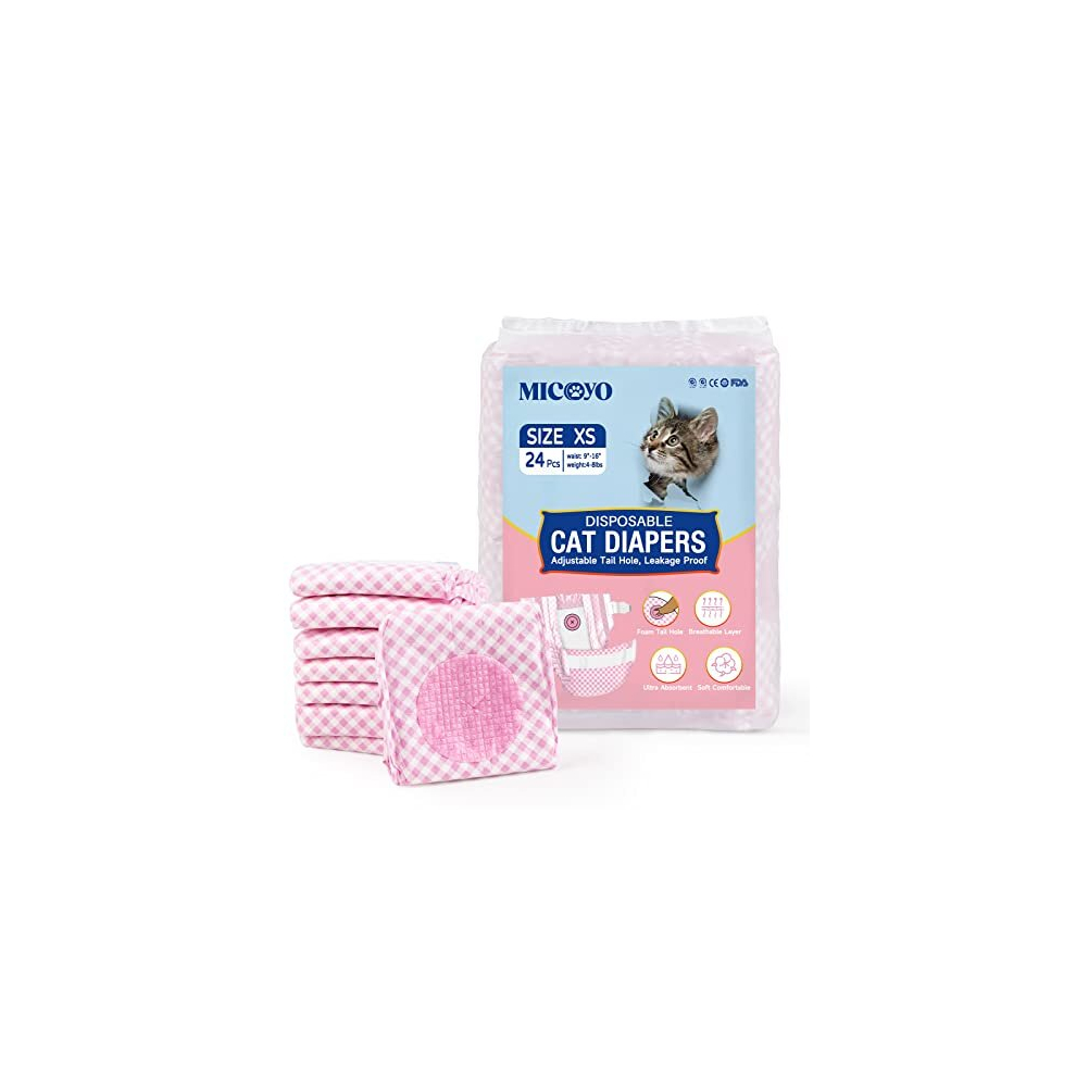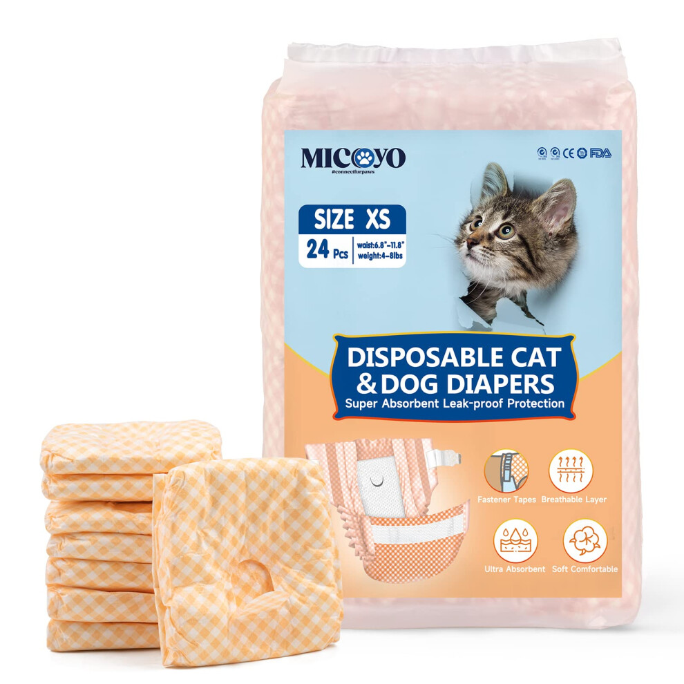 Disposable Puppy Cat Nappies - Super Absorbent Pet Diapers for Cats Small Dogs, Disposable Cat Diaper Pants for Female in Heat (XS, 24Pack)