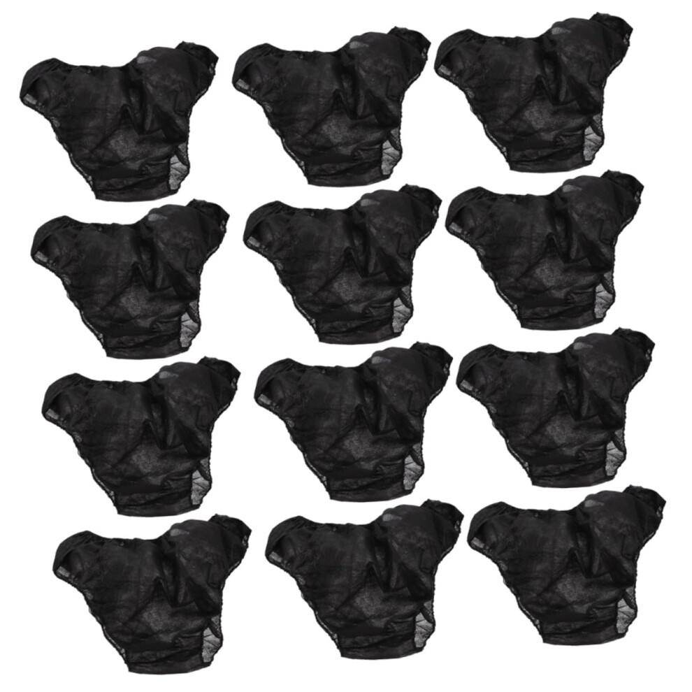 Disposable Triangle Pants 12Pcs Breathable Skin-Friendly Nonwoven Briefs For Sauna And Travel Elastic Waist Unisex Black