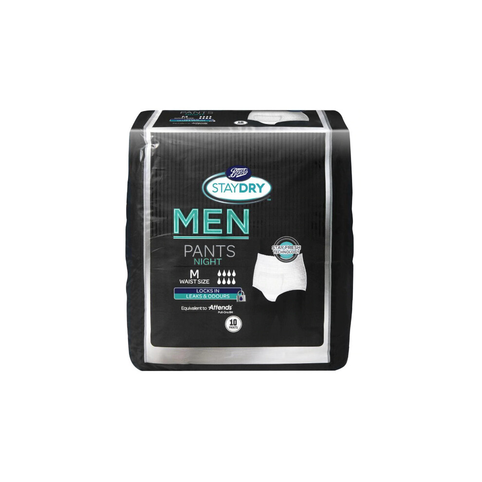 Staydry Men Night Pants Medium - 10 Disposable Overnight Pants with Derma Dry, Stay Fresh & Active Zone Absorption