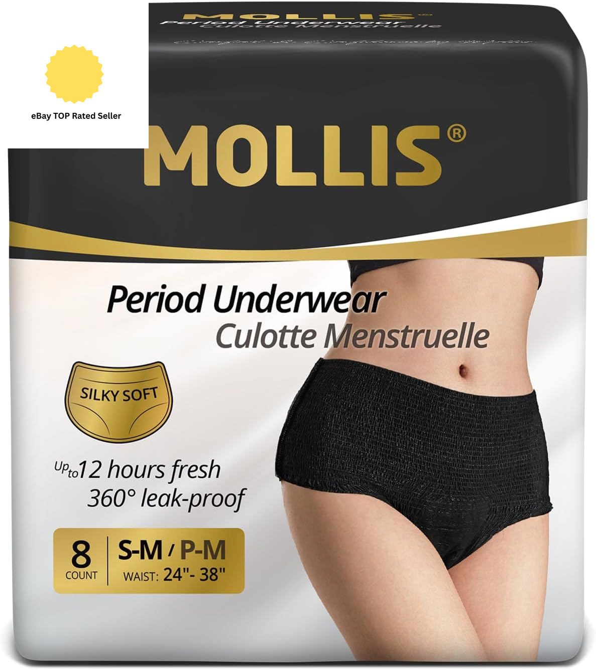 MOLLIS Disposable Period Pants for Women Heavy Flow & Incontinence, Black S/M, 8