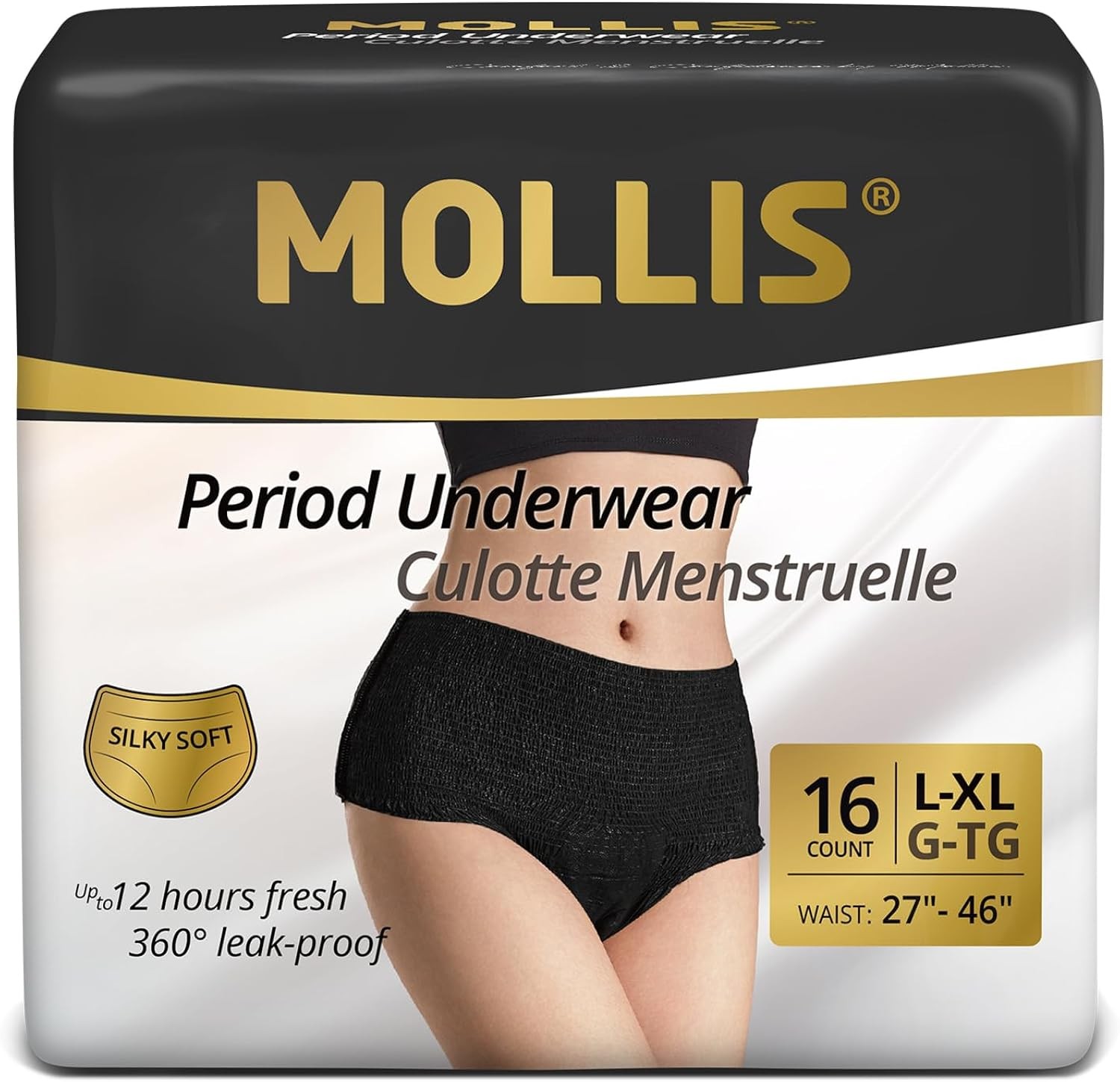 MOLLIS Disposable Period Pants for Women Heavy Flow, Maternity Pads & Postpartum Underwear, Incontinence Knickers Leak Proof, Black, XXLarge, 16 Count