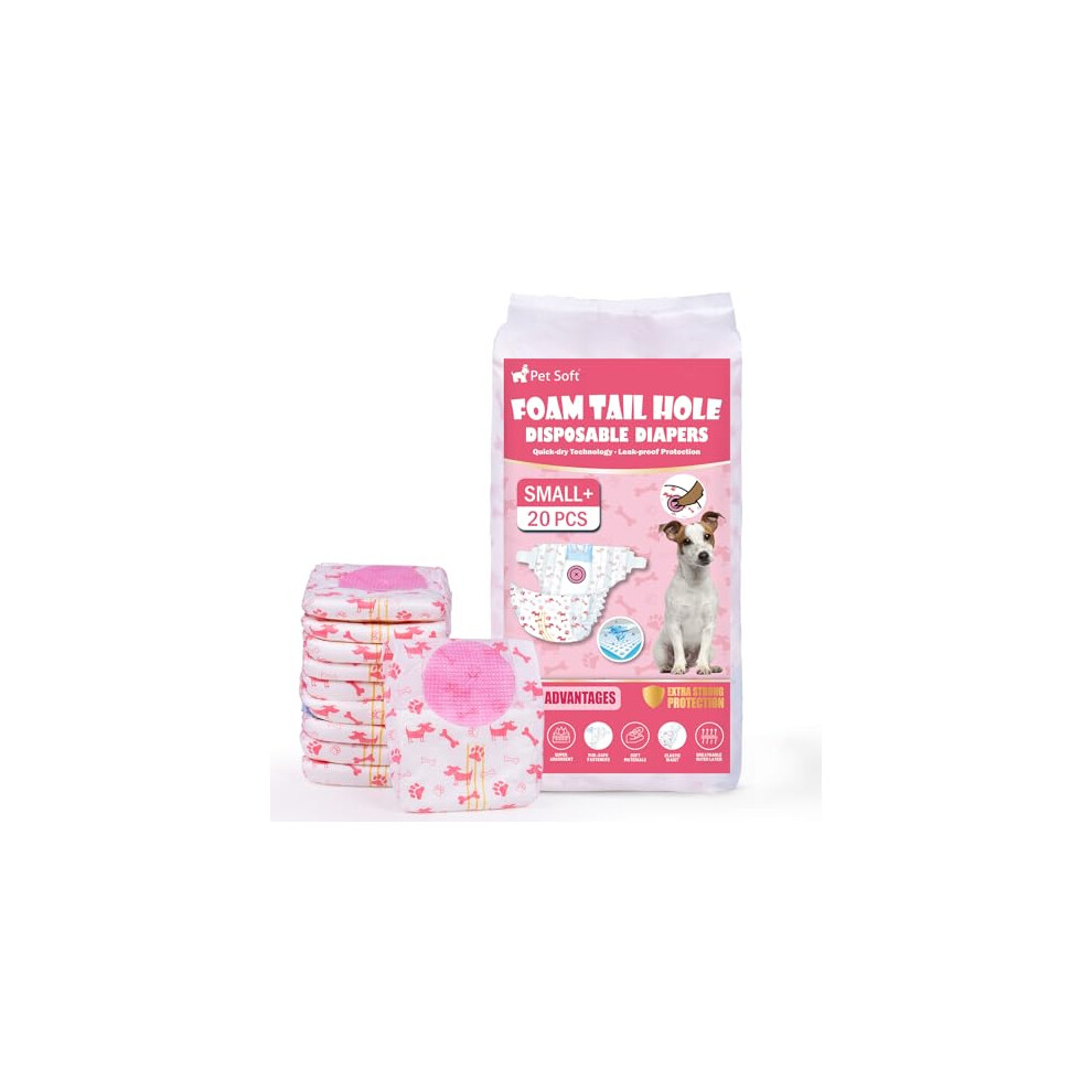 Pet Soft Dog Nappies Female, 20 Count Disposable Dog Pants Female S-M, Super Absorbent Disposable Dog Diapers for Female Dogs in Season/Heat/Incontine