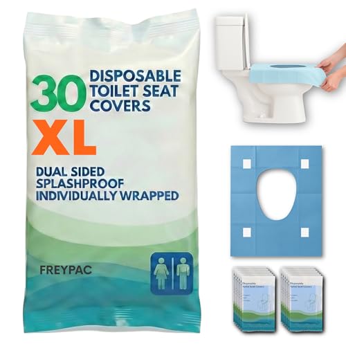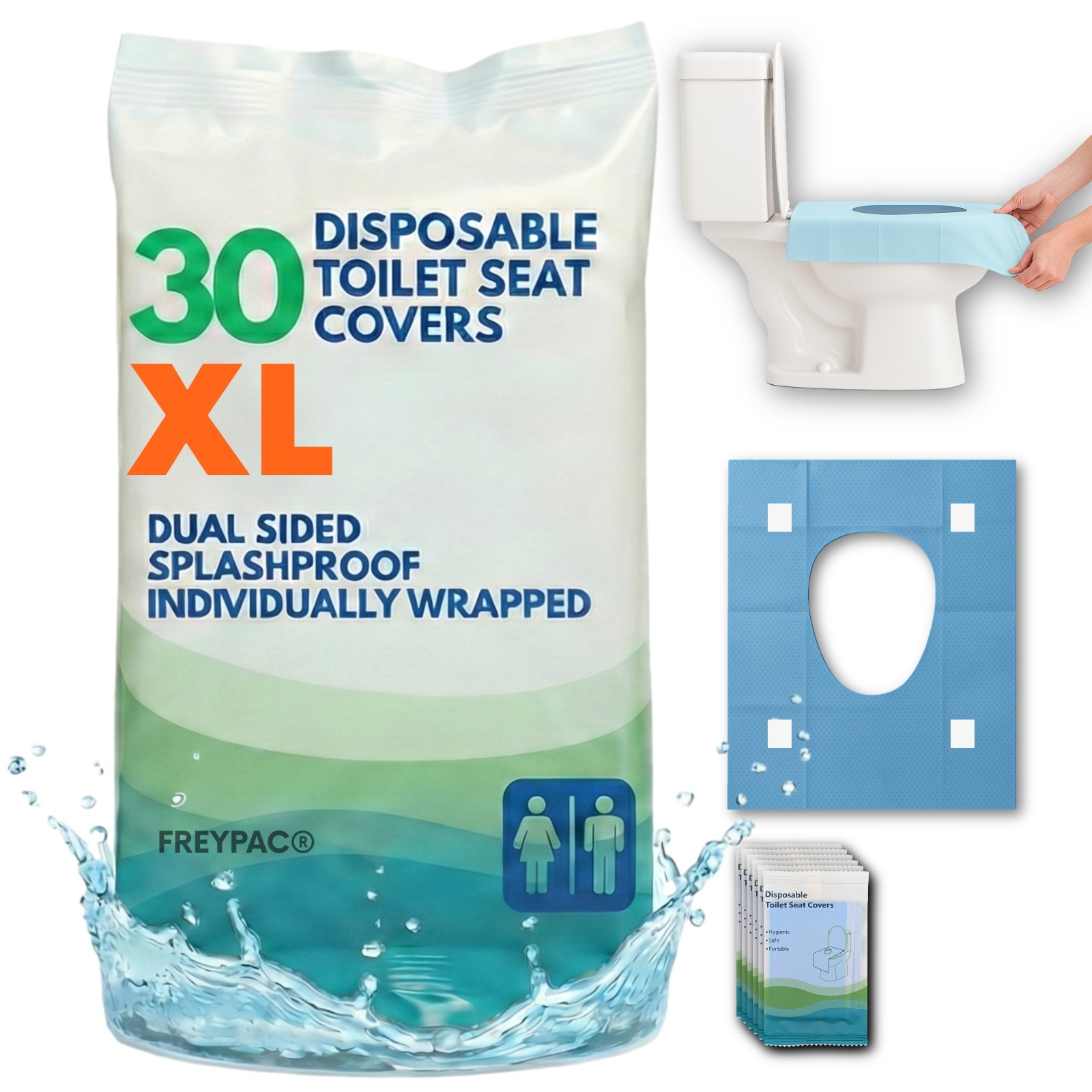 30 XL Disposable Toilet Seat Covers, 2 Sided Splashproof, Sticky Grip Non Slip