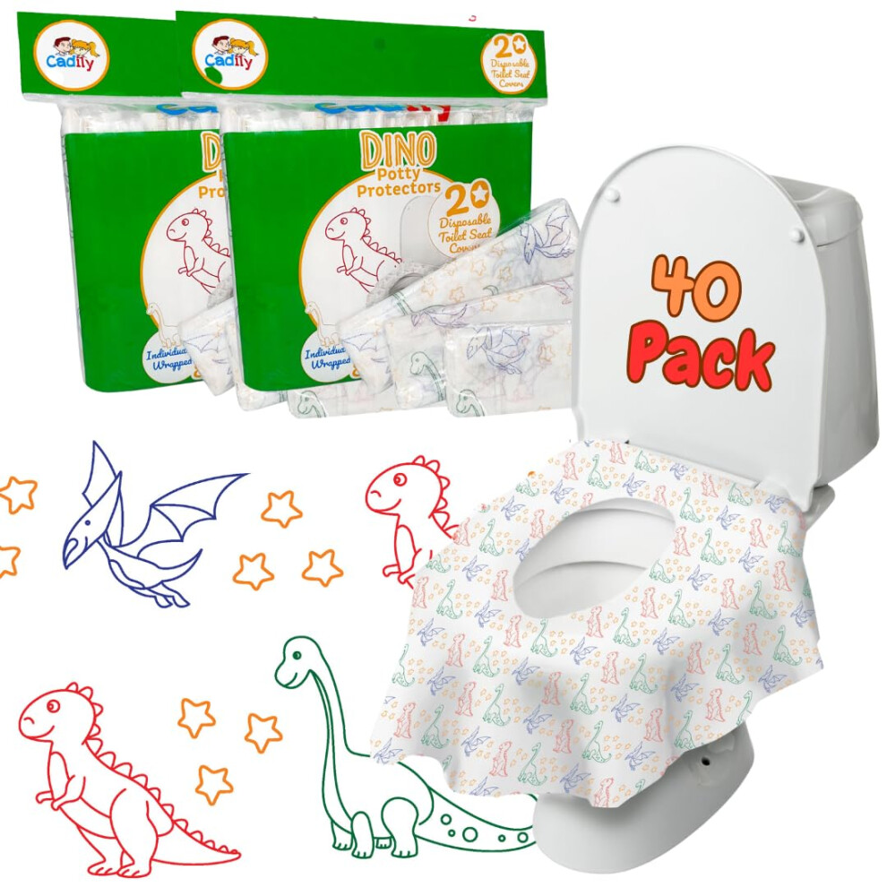 Dinosaur Disposable Toilet Seat Covers for Travel 40 pack Extra Large Waterproof and Individually Wrapped Toddler Toilet Seat Cover Disposable Po