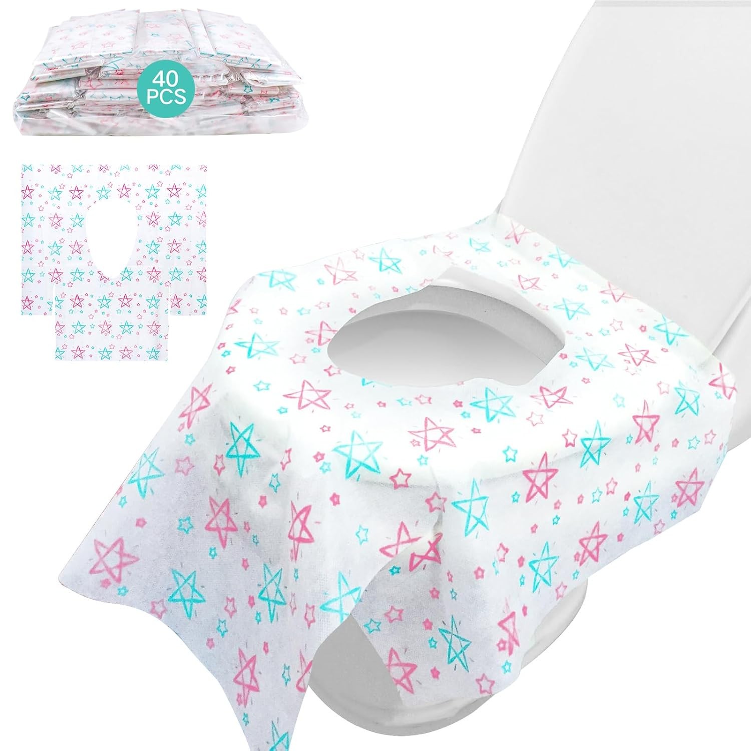 Disposable Toilet Seat Covers, 40Pcs Large Waterproof Toilet Paper Pad for Kid, Woman, Adult, Independent Packing Travel Toilet Seat Covers, Protect