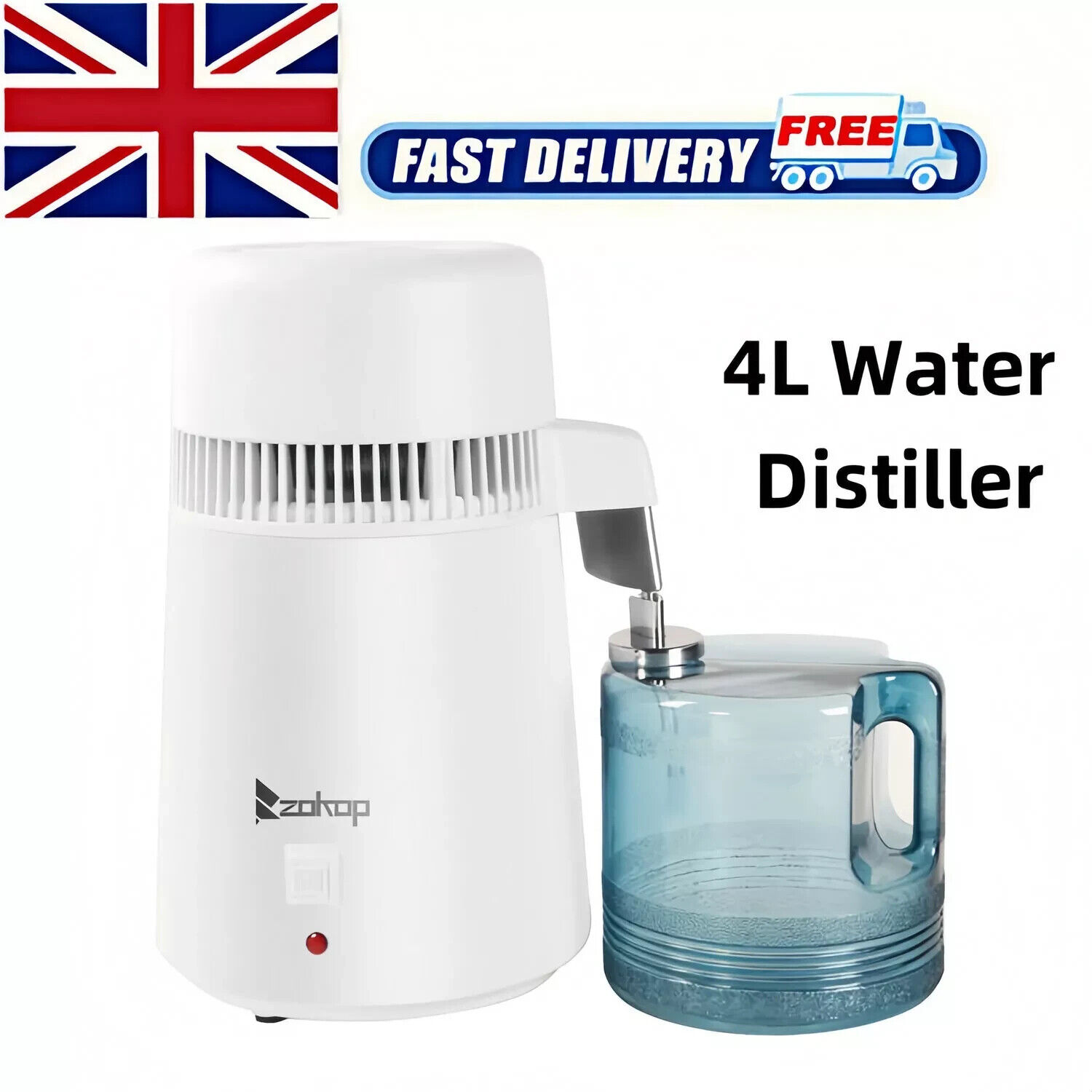 4L Countertop Water Distiller w/Container, 750W Stainless Steel Distilled Water Machine Maker Purifier Filter, Distilling Pure Water Maker for Home, Overheat Protection, UK Plug