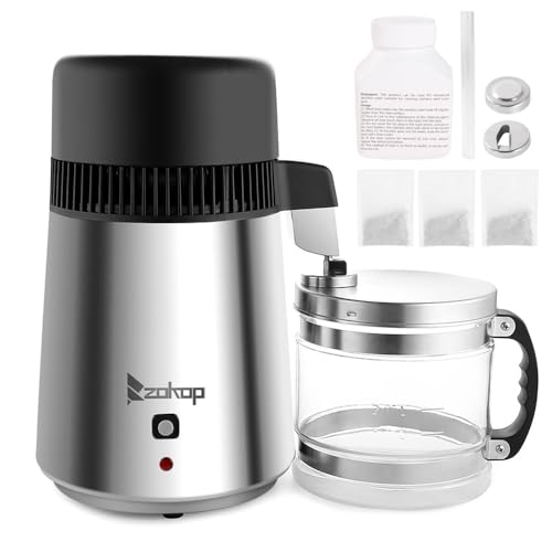 CO-Z Water Distiller, Stainless Steel Distilling Pure Water Machine for Home Countertop Table Desktop, 4L Distilled Water Making Machine, 4 Liter Water Purifier for Home,Brushed Silver
