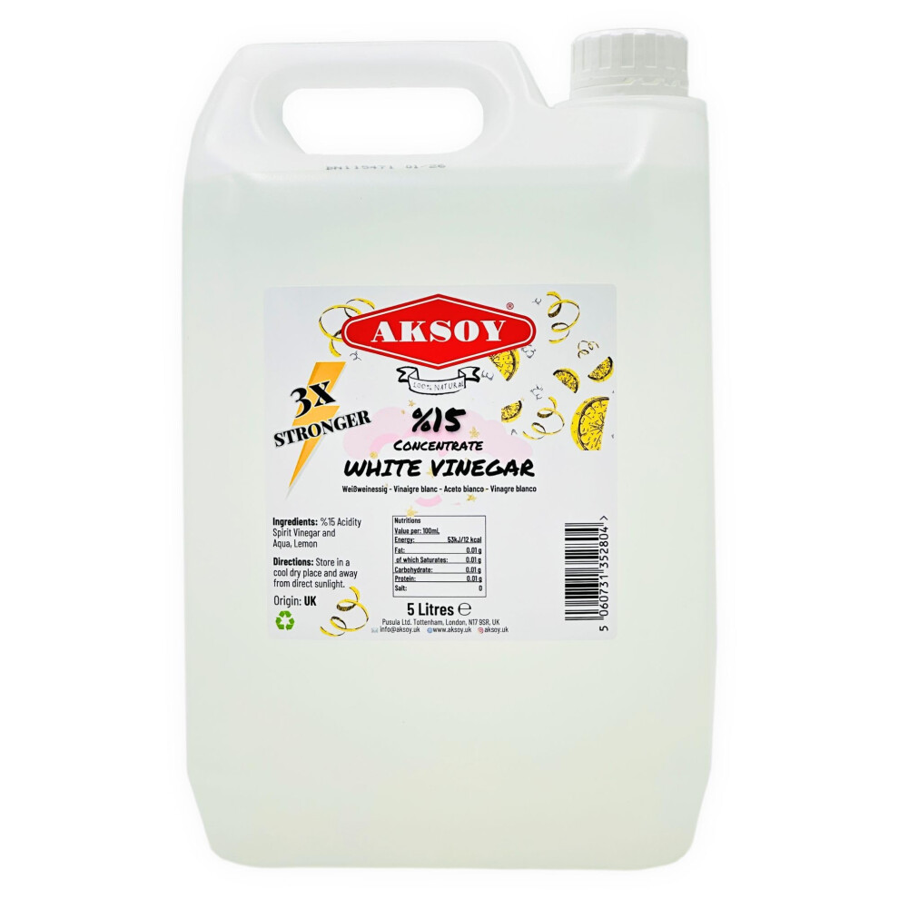 Aksoy Lemon White Vinegar 15% Concentrate 5LT | 3X Stronger Than Regular White Vinegar | Perfect for Cleaning, Tough Stains, Weed Killer, Descaling &