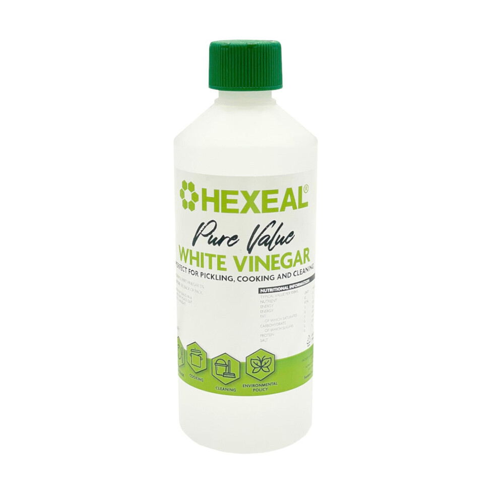 Hexeal Pure Value White Vinegar 500ml - 500ml Bottle of Food Grade White Vinegar for Cooking, Cleaning, Pickling & Baking Cleans Surfaces, Deodorise