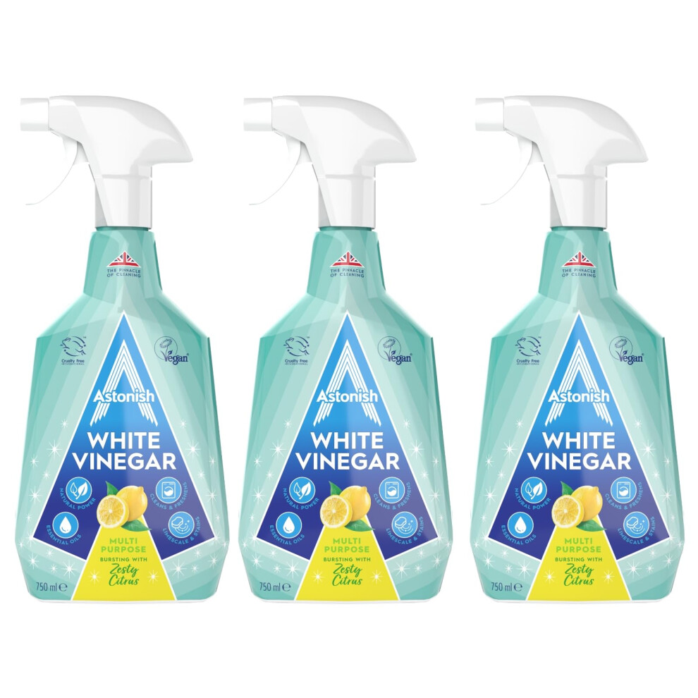 Astonish Multipurpose Cleaning Spray with White Vinegar, Powerful Cleaning for Surfaces, Zesty Lemon Scent, 3 x 750ml