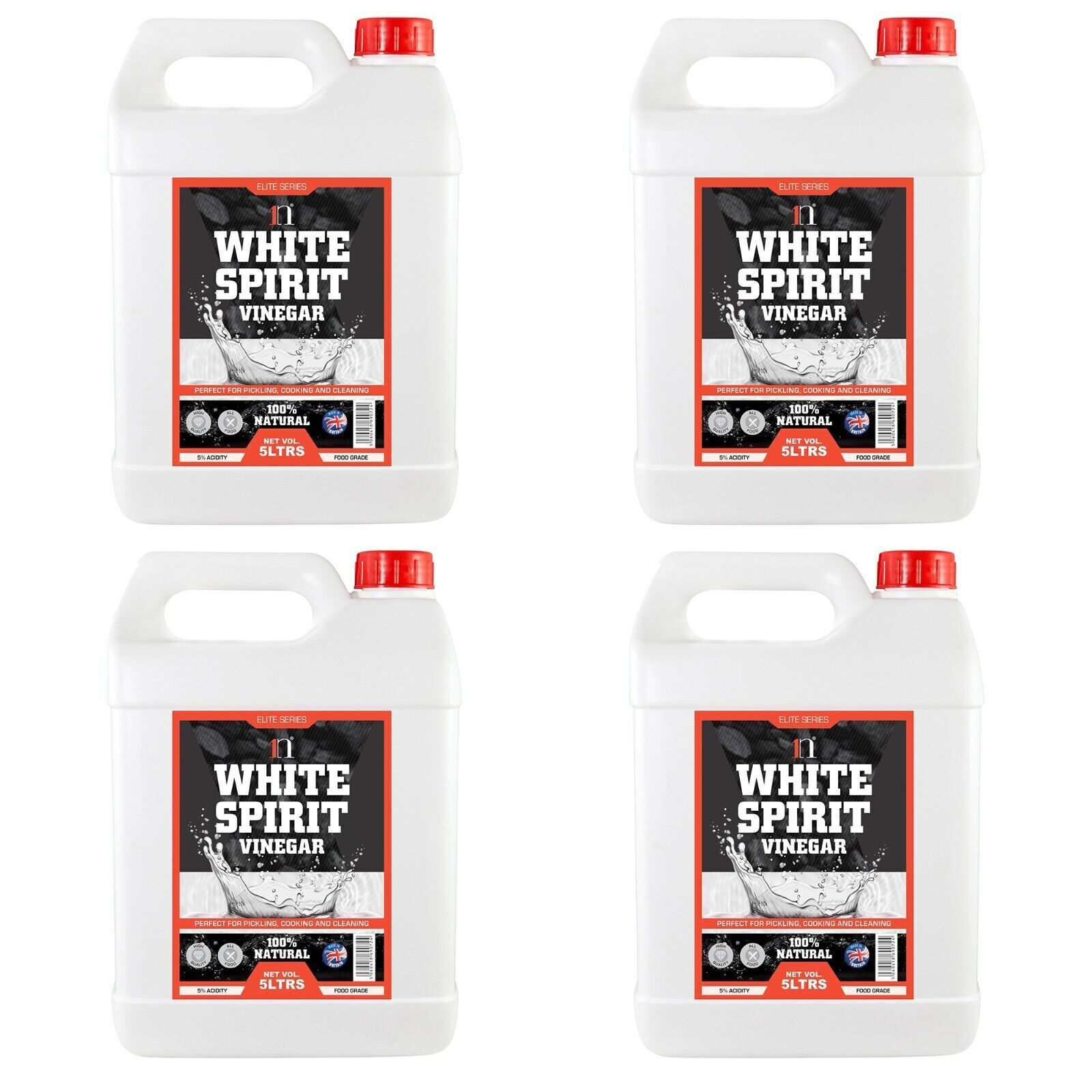 100% Natural White Spirit Vinegar 5 Litre Pack of 4 Cleaning Pickling Cooking
