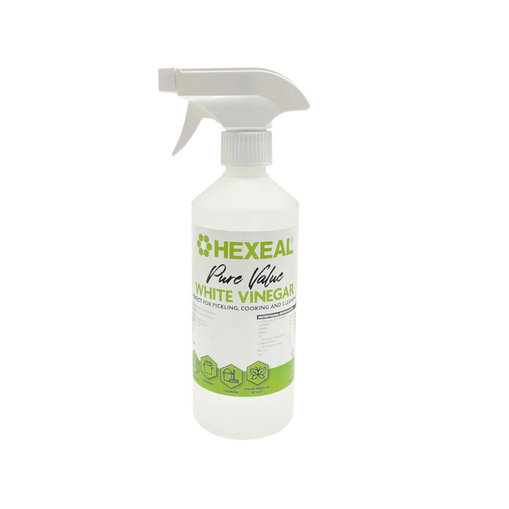 Hexeal Pure Value White Vinegar 500ml Spray - 500ml Spray Bottle of Food Grade White Vinegar for Cooking, Cleaning, Pickling & Baking Cleans Surface