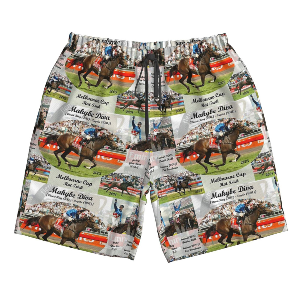 (Makybe Diva Melbourne Cup Hat Trick_7045) Famgem Men's Beach Shorts Hawaiian Swim Trunks with Pockets Quick Dry Board Swimwear Bathing Graphic Printe