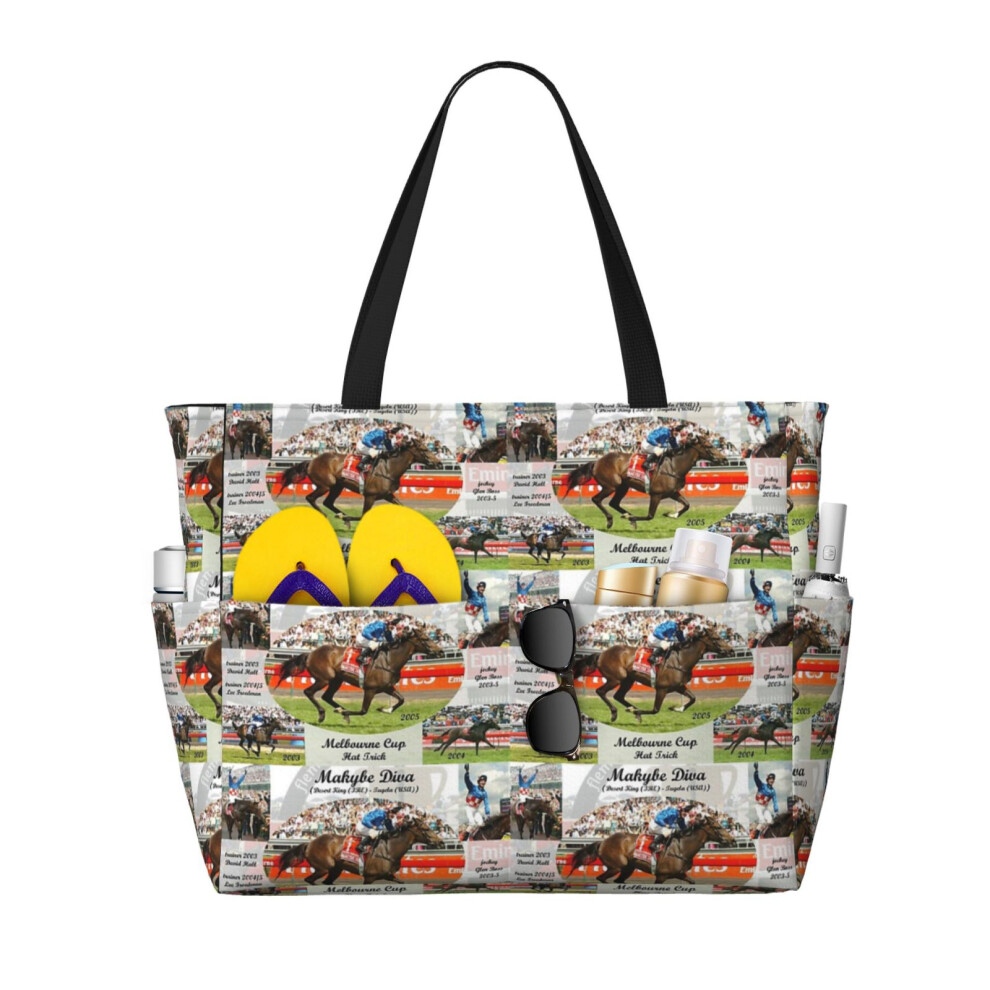 (Makybe Diva Melbourne Cup Hat Trick_7045) Beach Bag for Women Large Capacity Waterproof Sandproof Tote with 7 Pockets Pool Zipper Bags for Travel Vac
