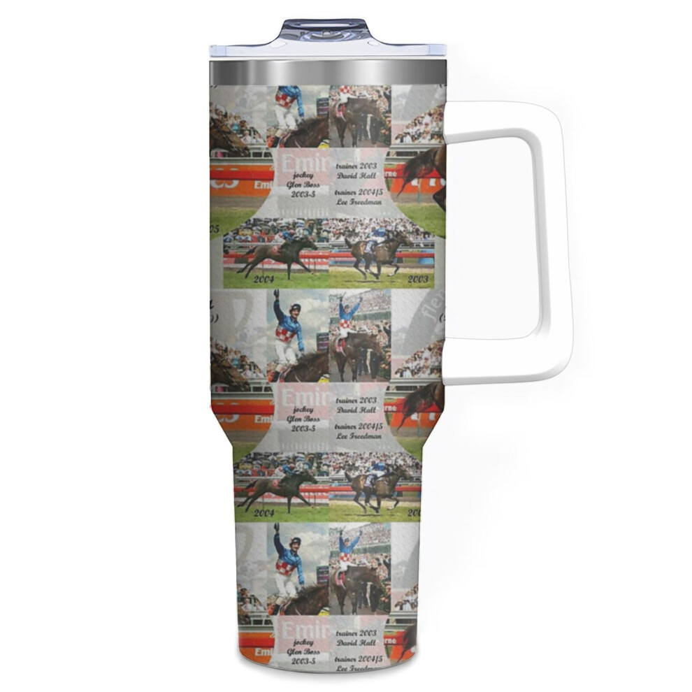 (MAKYBE DIVA - RACE HORSE - SILKS_7005) 40 oz Tumbler with Handle Stainless Steel Insulated Cup Leak Proof Travel Coffee Mug Keep Drinks Cold Hot Prin