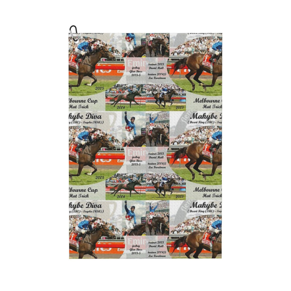 (Makybe Diva Melbourne Cup Hat Trick_7045) Golf Towel Funny Printed Cristmas Gift for Men Women Husband Dad Mom Birthday Golfers Fan
