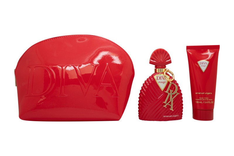 Emanuel Ungaro Diva Rouge Eau de Parfum 100ml, Body Lotion + Pouch Gift Set