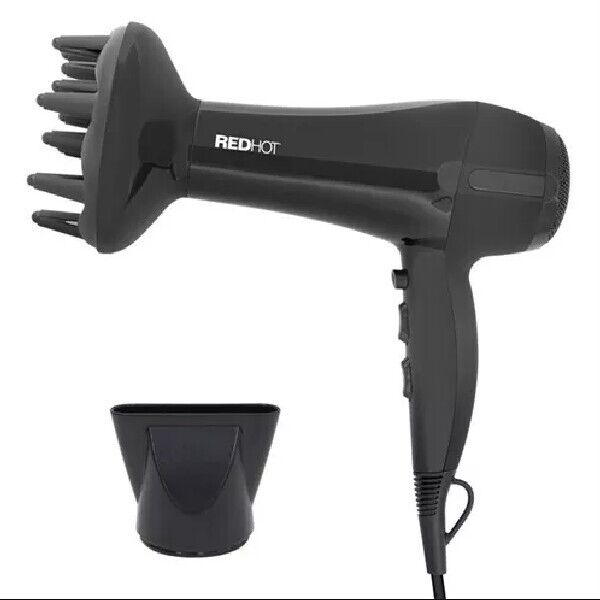 Hair Dryer Professional Styling Red Hot Style Diffuser With Nozzle Salon Black