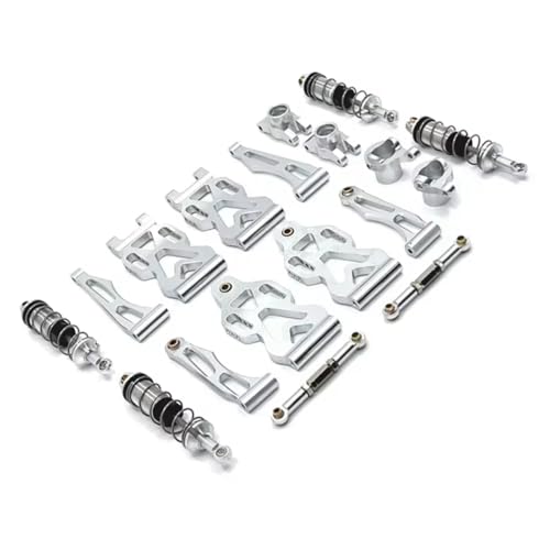 YONMFRDS RC Car DIY Parts For SCY 16101 16102 16106 16201 For JJRC Q130A Q130B Q141 Q117 1/16 Metal Front And Rear Arm Shock Absorber Kit RC Car Accessories(Silver)