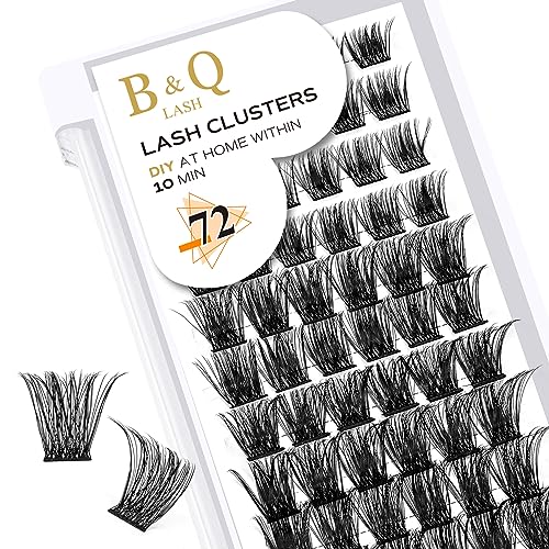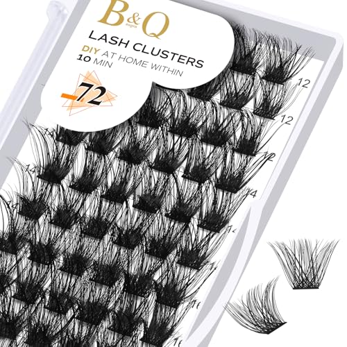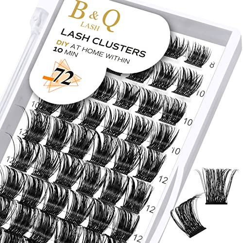 Lash Cluster C D Curl 72 Clusters B&Q Lash 12mm Individual Cluster Lashes Mega Volume Eyelash Clusters Soft Fluffy Cluster DIY Eyelash Extensions (B05-D-12mm)