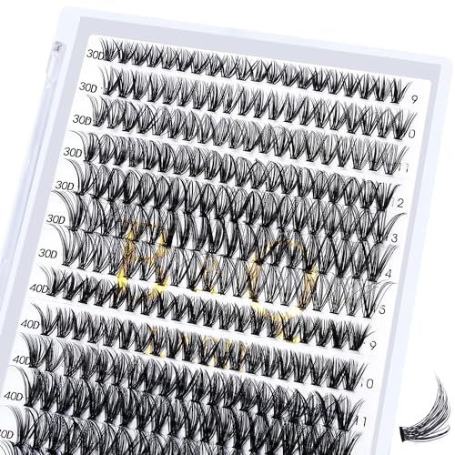 B&Q Individual Eyelash Clusters 280Pcs D Curl 30D 40D Lashes 9-16mm Mixed Length 0.07D Ultra Fine DIY Cluster Extensions Kit for Home Use
