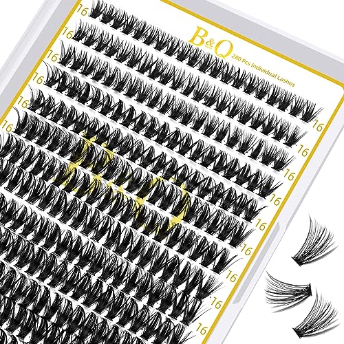 B&Q Lash Clusters 50D D 16mm Eyelash Cluster Lashes 280PCS False Eyelash Natural Individual Lashes Cluster DIY Eyelash Extensions at Home(50D-16)
