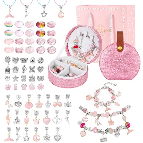 Emibele Girls Charm Beads Bracelet Making Kit with Portable Jewelry Box, Jewelry Making Kit for Kids Age 5 6 7 8-12, DIY Bracelets Crafts for Teens Girls Gift Choices on Birthday Valentines Christmas