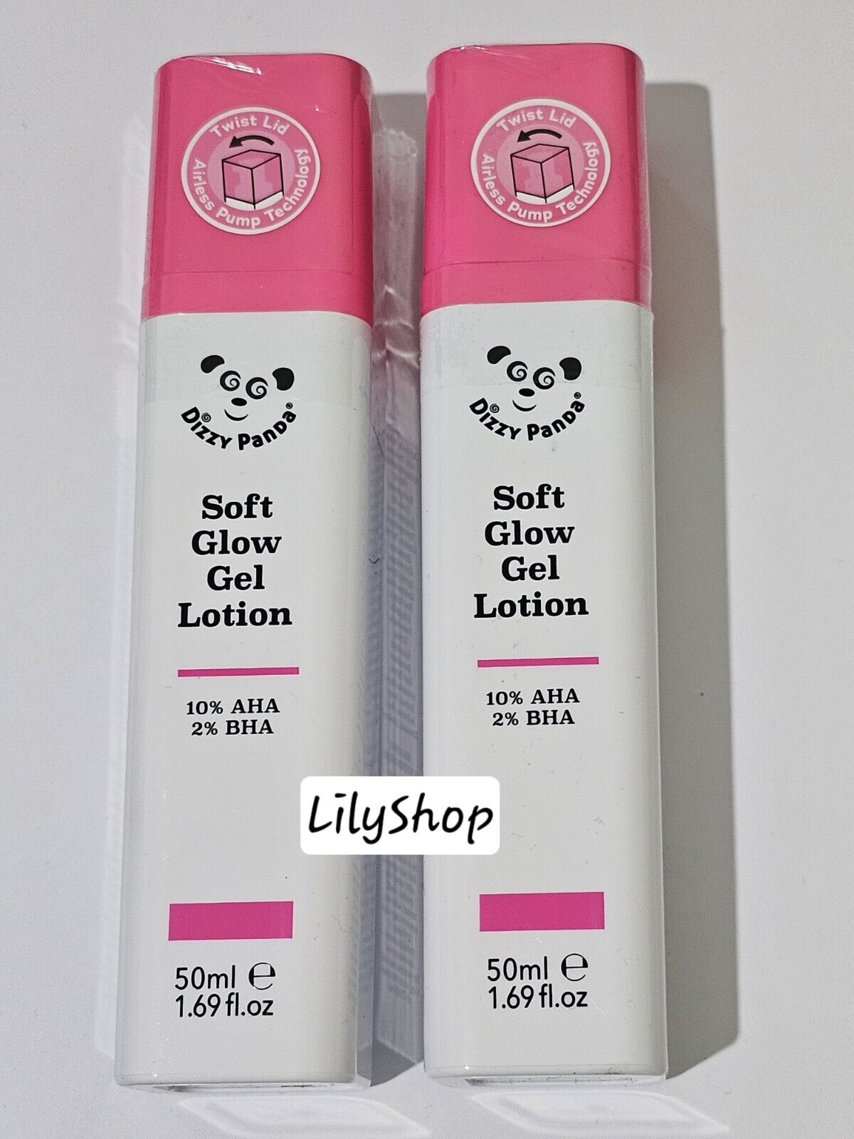 2 x DIZZY PANDA SOFT GLOW GEL LOTION 50ml TWIST LID AIRLESS PUMP TECHNOLOGY