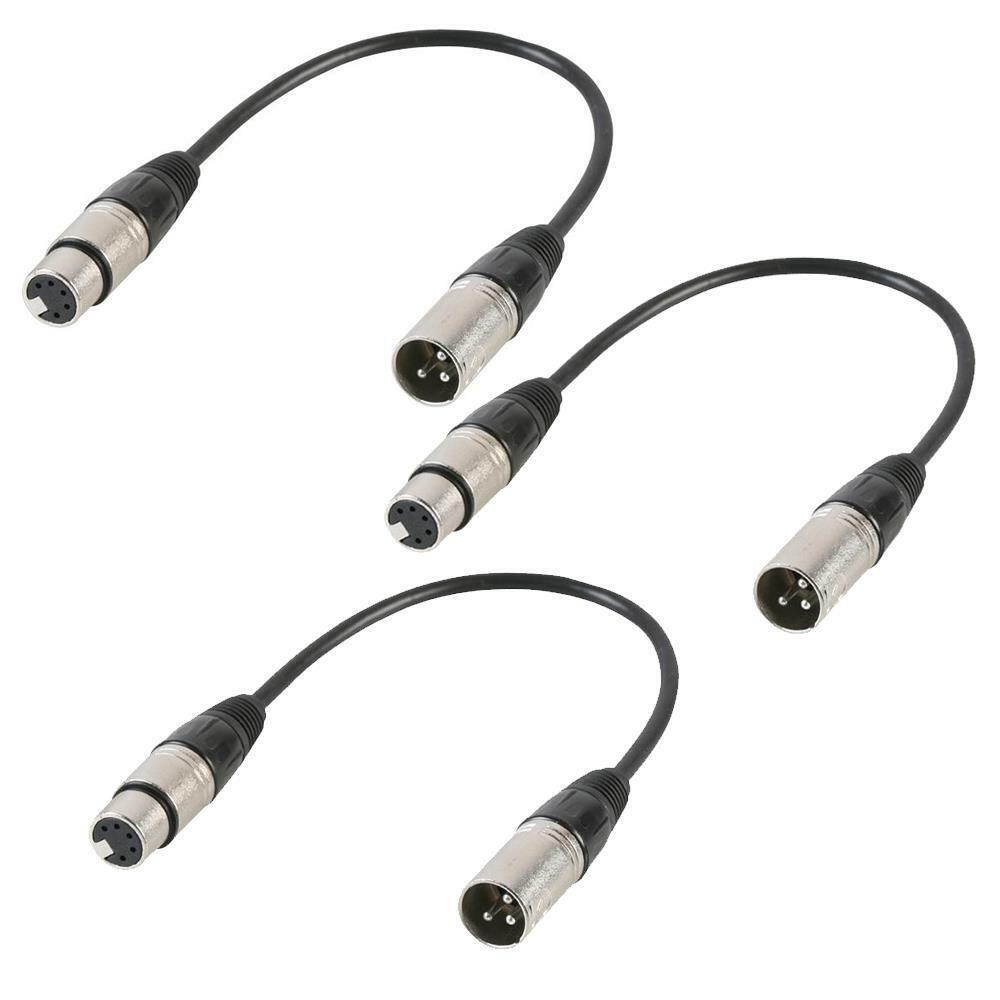3x Pulse 3 Pin XLR Male to 5 Pin XLR Female DMX Adaptor Lead Stage Lighting DJ