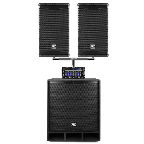 Vonyx Power Dynamics Combo1800 Active DJ Speaker Packages with STM-3007 Bluetooth Mixing Desk, Subwoofer, Tops, Poles & Cables Complete PA System Package