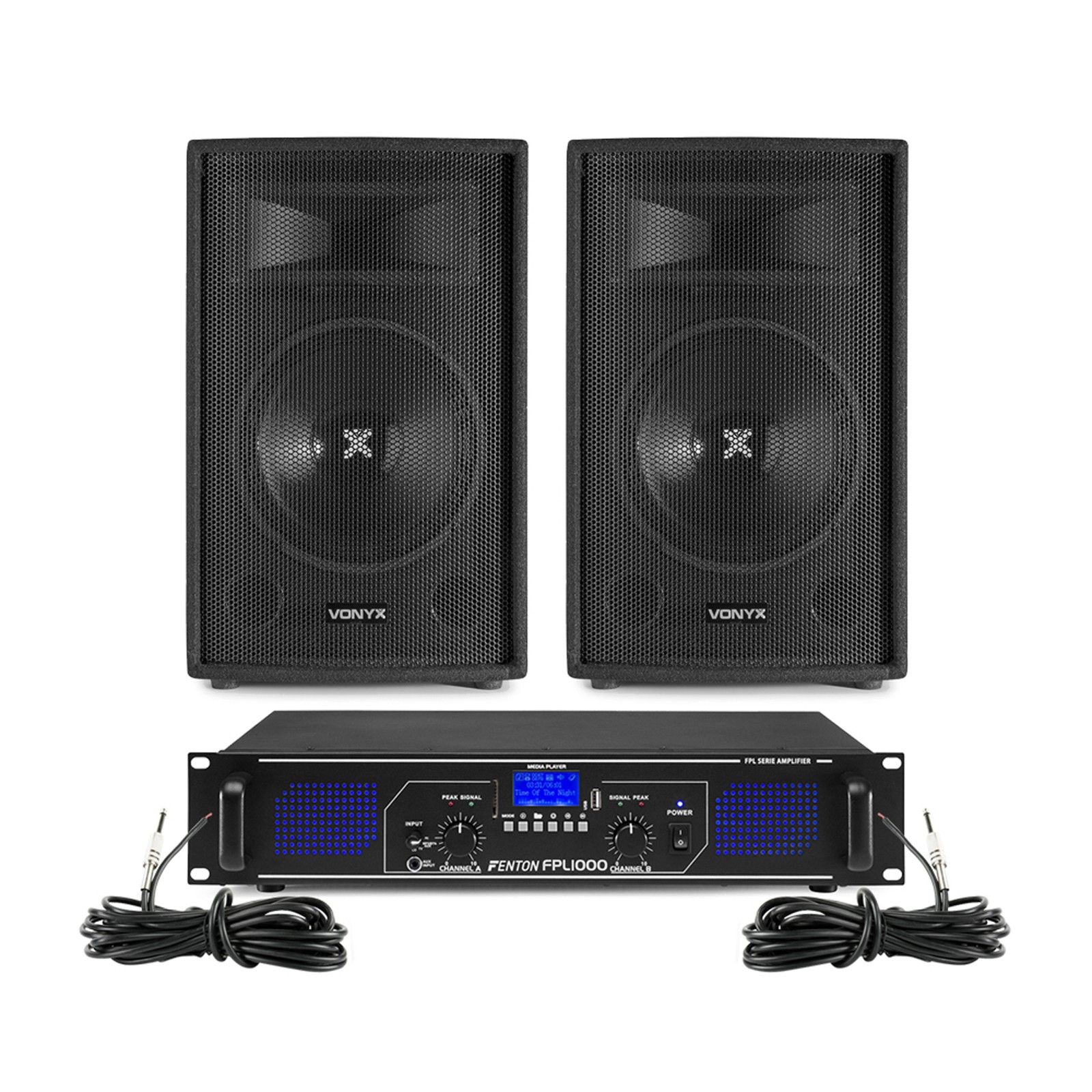 Vonyx SL10 10" DJ Passive Speaker Pair + SPL700 Amplifier & Cables 500W