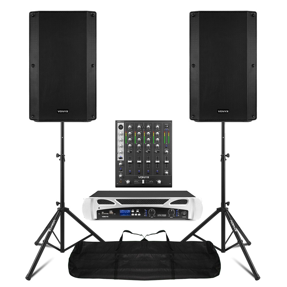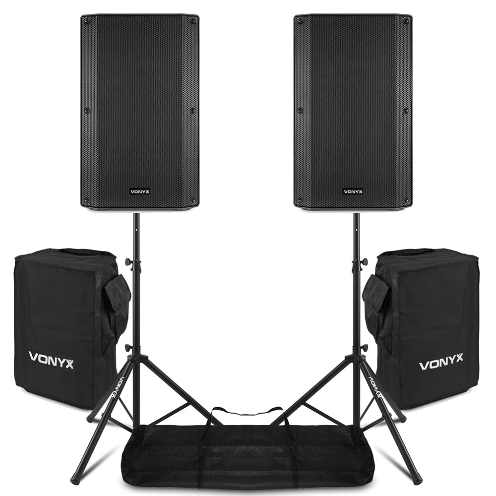 Vonyx VSA150S 15" Active Powered DJ PA Speaker System Set with Stands