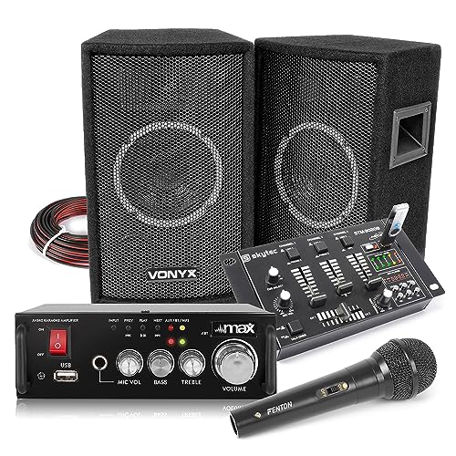 VONYX Bedroom DJ Speaker System SL6 with Bluetooth Amplifier, 6-Channel USB Mixer, Wired Microphone - Complete Home Karaoke and DJ PA Setup 250W