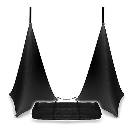 Vonyx Adjustable DJ PA Speaker Stand Set with Tripod Scrim Covers & Transport Carry Bag, Telescopic Height 1-1.9m, Durable Steel Design, 35mm Pole Mount, 120cm Stretch Black Lycra Scrims